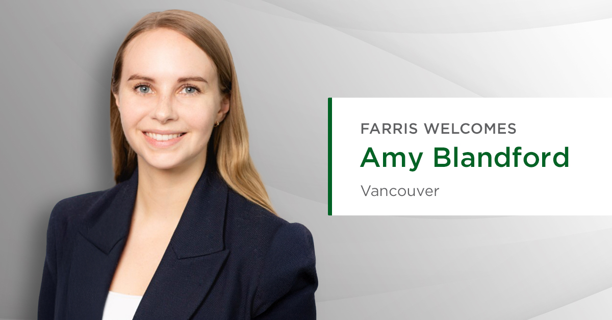 We are pleased to welcome Amy Blandford to the firm as an Associate. Amy obtained her LLB (Honours, First Class) from the University of Edinburgh and an LLM (Common Law) from the Allard School of Law at UBC. Amy maintains a broad real estate practice, advising clients on all aspects of real estate development and real estate related transactions, including acquisitions, dispositions, commercial and residential developments, financing, and leasing. She works closely with institutional lenders, developers, and corporate clients on large-scale transactions, and brings a business-centred approach to client matters.