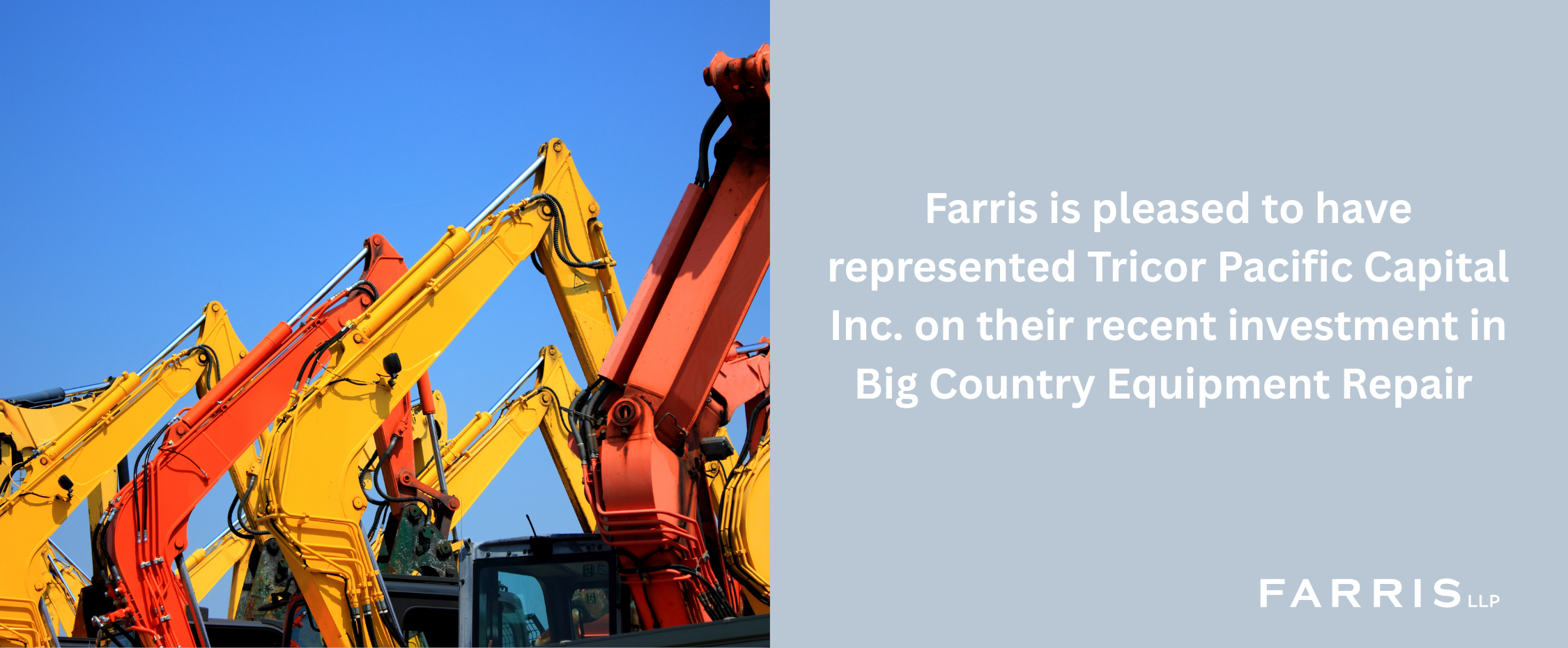 Farris is pleased to have represented Tricor Pacific Capital Inc. (“Tricor”) on their recent investment in Big Country Equipment Repair (“Big Country”).