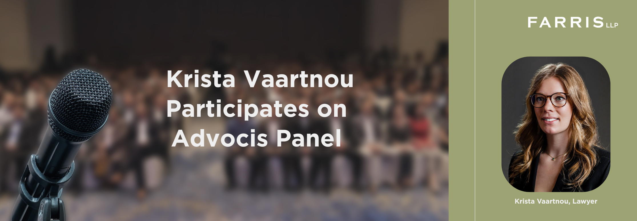 Farris lawyer Krista Vaartnou was a featured panelist at the Advocis Vancouver Island event on ‘Estate Planning Conversations While Being a Guide for Legacy Gifting’. The session explored practical and empathetic approaches to helping clients align their estate and charitable goals, highlighting the vital role advisors play in guiding meaningful legacy planning conversations that extend beyond financial considerations to lasting personal impact.