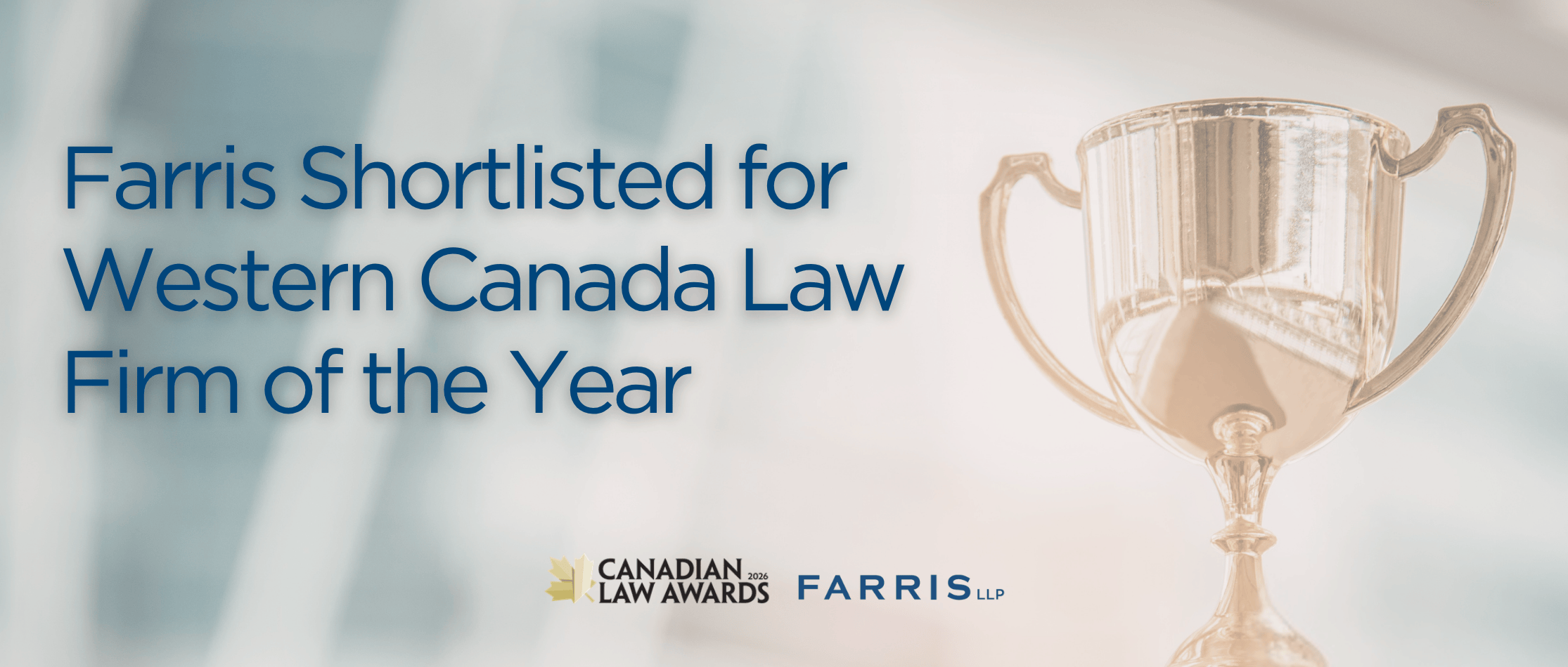 Farris has been shortlisted by Lexpert for Western Canada Law Firm of the Year for the 2026 Canadian Law Awards. This marks the seventh consecutive year of being shortlisted for this recognition, and having been awarded the top honour in two of those years. The Canadian Law Awards recognizes the nation’s leading law firms, in-house legal teams, individuals and landmark deals over the past year. It’s a true reflection of excellence in the legal profession.