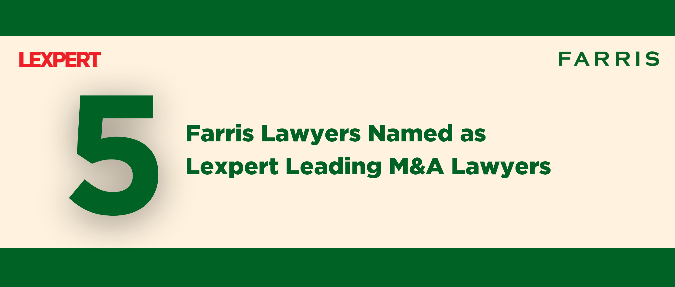 Lexpert’s Special Edition highlights leading Canadian lawyers in the M&A sector. Accolades go to Farris Lawyers: Daniel Everall (Lawyer to Watch), Mitchell Gropper, K.C., Albert Hudec, R. Hector MacKay-Dunn, K.C., and Denise Nawata.